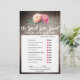 Den här rustiska blombuketten "sa hon"-matchen är perfekt för en blommigt land temat möhippa. På framsidan av spelkortet står det "hon sa", vilket är en roligt fråga om bruden och brudgummen. Kortets baksida innehåller en ord-sökning med bröllop-relaterad ord och fraser. Utformningen har en elegant arrangemang av rosa vattenfärgspennor på en trätexturerad bakgrund. Anpassa spelkortet med briderna namn och möhippa.