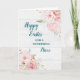 Kort för hälsning av glad påsk med vackra vattenblommor i land och en rustik i mönster.