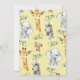 Söta, rustiska tittar safari-djur... en barnduschinbjudan med fyra söta djungeldjur. Baksidan av inbjudan innehåller en gult safari-djur och lövning-mönster. Underbar för en safari könsneutral tematisk babydusch.
