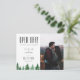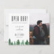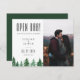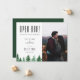 Rustik vattenfärgsskog, "OPEN PUB!", bröllop humor spara datumfotokortet. Kortets baksida har en solid hunter grönt färg.