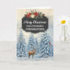 God jul för stepbroderkort med land-kritan mönster och snöfärgsskog med hjort och fåglar.