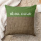 Land Cabin Fransk Dekorativ kudde. Rustic burlap ser ut med Chez Nous mot Grönt. Elaken "i vårt hus" i Fransk.