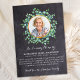 Modern vattenfärg Eucalyptus Greenery Sympathy Photo Funeral Tack du Cards. Dessa sympatikort för begravning har en unik fotomall i botaniska andedräkt i eukalyptus, namn och data, på en rustisk schalkboard-skifferdesign. Anpassa dig med ditt tack. Dessa minneskort är perfekter för begravning av tackkort eller firande av livets tackkort. COPYRIGHT © 2020 Judy Burrows, Black Hund Art - Med alla Höger reserverade. Rustik Funeral Eucalyptus Greenery Photo Sympathy - tackkort