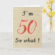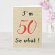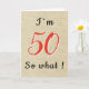 Rustic Funny inspirationsoffert 50:e födelsedagskortet. Konstruktionen innehåller ett lustigt citat... Jag är 50, så vad? Ett inspirerande hälsningskort för en man eller kvinna som firar 50-årsdagen och har en känsla av humor. Du kan ändra åldersnumret.