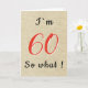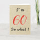 Rustic Funny inspirationsoffert 60:e födelsedagskortet. Konstruktionen innehåller ett lustigt citat... Jag är 60, så vad? Ett inspirerande hälsningskort för en man eller kvinna som firar 60-årsdagen och har en känsla av humor. Du kan ändra åldersnumret.
