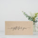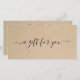 Ett presentkort för elegant med "en gåva åt dig" med dekortecken i ett handskrivet skript över en rustik brun papper bakgrund. Baksidan har presentcertifikatsformuläret tillsammans med din affärskontaktinformation. Denna enkla och feminina utformning är underbar för ett hantverksmässigt hantverk.