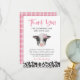 Tack för att du har ett kort med en baby-ko med rosa blomma. Budskapet tackar gästerna för att de kom till duschen och för deras gåvor.