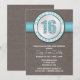 Rustic Glitter Aqua Blue Sweet 16 inbjudningar