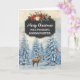 God jul för guddotterkort med land-schalkboard mönster och snöfärgsskog med hjort och fåglar.