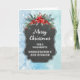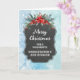 God jul för guddotters och hennes make-kort med rustik land-kalkbrädet mönster och vintern blad med poinsettias.