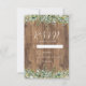 Complete your wedding stationery with this elegant RSVP card featuring eucalyptus greenery, soft white florals, and gold accents on a rustic wood background. Designed to coordinate perfectly with the matching invitation suite, this response card adds a refined botanical touch to your wedding correspondence.