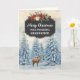 God jul för barnmorskkort med den rustiska land-kritan mönster och den snöfärgade skogsscenen med hjort och fåglar.