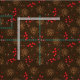 Rustik mörk bruntyg med en skog mönster av fir träd gräs och röda hollbär