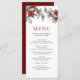 Elegant bröllop-menyn med vackra röda poinsettia-blommor med gräs-koner och löv.