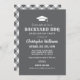 "Bakbänks-BBQ"-partiets inbjudan innehåller en studentmössa, en snyggt anpassningsbar i typsnitt, en rulla, en mönster designad inslag och vit text. Grått-färg kan anpassas. Perfekt för en avslappnad utomhus sommartid studentfest.