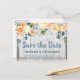 Den här söt boho rustic Save the Date vycard har en lätt grått-lä-bakgrund med trendig typografi. Med det här alternativet sparar du postkortet som dekoreras med en blommigt med korall, persikor och blå ro-vattenfärg med grönt som löses ut. Anpassa teckensnittet och färg i texten efter dina önskemål och fyll i returadressen på baksidan.