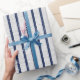 Rustic Grått Linen & Navy Blue Rand Mönster Presentpapper