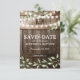 Ange tonen för landsbyggsbröllopet med våra unikt designade "Spara datumkort". Bask i den vackra mörken med en barrbotten av barrträ i ladugården, belyst med en tvillingsträng ljus. Elegantens vattenfärgsgrej i kombination med ditt monogram och den moderna formuleringen i bröllop gör dem till en minnesvärd keepy för dina gäster.
