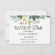 Trädgårdsträdgrönt buquet rustik typografi sparar datumkortet.