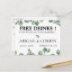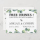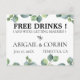 Rustik vattenfärg silver-dollar-eukalyptus löv, "FREE DRINKS!", lustigt Spara vykortet för datum. Anpassa teckensnittet stil, färg och storlekt.