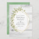 Trendig Sage grönt och vit vattenfärg löv en inbjudan till ett bröllop mellan land och guld geometriska ram. Perfekt för varje tema eller trädgårdsbröllop. QR-koden på andra sidan går till din bröllop-webbplats där människor kan lära sig mer och osa.