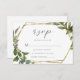 Den här strålformgivningen har ett guld-geometriskt ram som dekorerats med vattenfärgseukalyptus och olivgrej, med ord "Kinely Reply" i kalligrafiskriptet för kol-grått i snyggt.