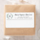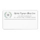 Etiketter för returadress som innehåller ditt monogram inuti en vattenfärgskrans i rustik grönt och namn i ett tjockt handskriftsteckensnitt och två linjer text för returadressen, över en vit bakgrund. En tunn linje delar upp utrymmet nedanför där du kan handskriva kundens adress. Dessa botaniska miljömärken är ett underbart sätt att få professionellen att röra paket.