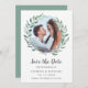 Rustic sparar datumet med din favorit bild inuti en vattenfärg som målats i en grön krans, över en vit bakgrund. Nedan visas ord, "Spara datum" i ett handskriftsteckensnitt och bröllop i ett sans serif-teckensnitt. Baksidan är en matchande grönt och kan ändras till valfritt färg. Denna enkla botaniska utformning är underbar för en sommar firande. DESIGN TIP: Du får bäst resultat om du användor ett foto med ljusbakgrund.