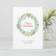 Skicka ut helgdag cheer med det här platta julkortet som inte är fotott och som innehåller en elegant och rustik vattenfärg som målats upp i grönt andetag med gräs grenar och hullbär i hälsning, "God jul" i rött. Nedan är din familj namn och år i grönt. Baksidan har en spiral av holly tillsammans med ditt personlig-meddelande. Inget foto krävs för det här moderna och personlig julkortet.