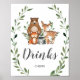 Rustic Greenery Woodland Animals Drinks Sign Poster