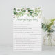 Dessa berömvärda Nursery Rhyme Quiz-spelkort är ett underbart sätt att sparka av roligten på din babyskor och garanterade att bli en enorm slå! Ge dem bara runt under babyduschen där gästerna får roligt att besvara frågor om sina favoritlekskolor! Första personen med rätt svar vinner! Utformningen har fantastiska vattenfärgsfärgade löv i grönt, perfekt för en babydusch i vår eller sommaren. Den här utformningen är underbar för en könsneutral babydusch.