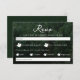 En rustik OSA kort som innehåller en scenisk skogsfotobakgrund av Destei med elegantens titel som innehåller texten "OSA" och en underrubrik som uppmanar gästerna att vänligt svara vid angivet datum. Utrymmen ingår för gästdater, svarsalternativ och entréval med löv-silhouettes som fungerar som unika kryssrutor för att komplettera skogarnas tema. Ett avsnitt om kostbehov ger utrymme för ytterligare information. Baksidan har en grönt bakgrund färg med en fir träd silhuett och ett personlighetsanpassat initialer och bröllop datum. En matchning mellan perfekter för utomhusbruk, skog, vandring eller naturinspirerat bröllop.