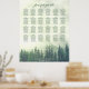 Detta vackra bröllop-säteskarta har en strålande bild av en dimmig eller miststug högsida som täcks av en skog i grönt gräs träd. Rubriken lyder "hitta bord" i elegantens äldre skriptkalligrafi. Det finns utrymme för parets datum namn och bröllop. I det här diagrammet finns bord-uppdrag för 240 gäster 10 personer per bord. Perfekt för ett utomhus- eller bergsdestinationsbröllop.