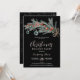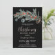 Rustik grönt gräs: röd julfest för julföretag med grönt gräs gren, röda bär, isblåa julprydnader och elegant, typsnitt för typsnitt på svart på svart