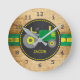 Rustic Grönt Tractor Faux Wood Rund Klocka