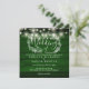 En rolig bröllopsinbjudan som innehåller söt string ljus och en delikat, handritad, rustisk blommigt av botaniskt löv blad med snyggt-manus-typografi på en rustik emerald grönt-bakgrund med ditt speciella foto på baksidan. Designad av Thisisnotme©