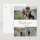 Det här bröllop-tack för den roliga guld 3-fotokollage som du vill ha är perfekt för ett landsbyggsbröllop. Den enkla och moderna designen guld och vitt har en unik, handskriven kalligrafiskrift med en contemporary minimalistisk boho stil. Anpassade i alla färg. Behålla designen minimal och förenklad, eller anpassa den genom att lägga till egna bilder och teckningar. Anpassa baksidan av vykortet med namn och ett tackmeddelande. Du kan också lämna tackmeddelandemallsavsnittet tomt om du vill att skrivan ska förses med en personlig på varje kort när de har anlänt. Dessa kort kan användas för en bröllop, möhippa eller vilken speciell händelse som helst.
