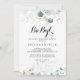 Den här blommigt-guldet BabyQ-babyduschgrillinbjudan är perfekt för en enkel babydusch i par eller baby sprinkle. Den här konstnärliga utformningen har handritad blommigt från guld och grönt från eucalyptus, som inspirerar naturskönheten.