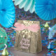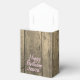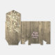 Bruna, rustiska träplankar med himmery-blommor i guld tillsammans med en rosa bun och pärlor visas på klaffen och under klappen kan du anpassa din händelse genom att skapa en rustik skrynklande beröring till vilken firande som helst.