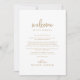 Dessa rustiska guld bröllop välkomnar brev och färdkort är perfekt för ett landsbyggsbröllop. Den enkla och moderna designen guld och vitt har en unik, handskriven kalligrafiskrift med en contemporary minimalistisk boho stil. Anpassade i alla färg. Behålla designen minimal och förenklad, eller anpassa den genom att lägga till egna bilder och teckningar. På kortets framsida finns ett välkommet brev och på kortets baksida finns en rutt i bröllop. Dessa anteckningar är perfekt för destinationsbröllop och hotellgästväskor.