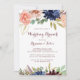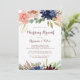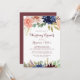 Denna rustiska guld löv och blommigt bröllop brunch-inbjudan är perfekt för en enkel dag efter att familjen bröllop och vännerna samlas i brunch. Utformningen har handritad vattenfärgsfärg, lila, marin, , burgundisk, marina blommor, grönt och guld löv.