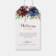 Dessa löv i guld och bröllop i blommigt är perfekt för ett modernt bröllop. Utformningen har handritad vattenfärgsfärg, lila, marin, , burgundisk, marina blommor, grönt och guld löv. Dessa märkre är perfekt för hotellgästväskor och destinationsbröllop.
