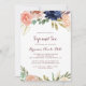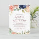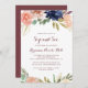Denna rustiska guld lämnar blommigt kalligrafi sip och se inbjudan som perfekt för ett enkelt möte med party i baby. Utformningen har handritad vattenfärgsfärg, lila, marin, , burgundisk, marina blommor, grönt och guld löv.