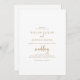 Det här guld-skriptparet och båda föräldrarna som är värd för bröllopsinbjudan är perfekt för ett landsbyggsbröllop. Den enkla och moderna designen guld och vitt har en unik, handskriven kalligrafiskrift med en contemporary minimalistisk boho stil. Anpassade i alla färg. Behålla designen minimal och förenklad, eller anpassa den genom att lägga till egna bilder och teckningar.