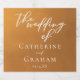 Den roustiska guld-bröllop-glupska vin-etiketten har elegant vit typografi som är täckt av en underskattad marktonfärggradient. Den enkla ljusa orangen och de bruna nyheterna följer den nuvarande nedgången för ett bröllop i Böhmen i höst. Fyll i utseendet med ditt minimalistiska manus över färg toningen.