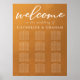 Stationsschemat i Rustic guld bröllop har en vit elegant typografi som är täckt över en underskattad marktongradient. Den enkla ljusa orangen och de bruna nyheterna följer den nuvarande nedgången för ett bröllop i Böhmen i höst. Slutför utseendet med ditt minimalistiska manus över det här färg tonar ut välkomstposter.