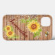 Ett solrosskum av elegant gult Iphone case som består av en brunkornig bakgrund av träkorn som dekorerats med en gult av söt blommigt med vattenfärg med en med ett bin och en sträng med ljus. Gör en unik gåva till födelsedag eller studenten eller bara för att skydda en ny mobil. Anpassa genom att ändra namn.