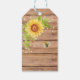 En elegant märkre för solrosgåva av rustisk gult bestående av en bakgrund av brunt träkorn som dekorerats med en gult av söt blommigt med en solrosa med ett bin och en sträng av ljus. Underbar till använda som ett tack för märkrn för favoritpåsar, lådor och presentförpackningar, för möhippor eller förlovningsfester från Bröllop. Anpassningsbar med eget namn anpassar sig sedan efter ditt eget val av namn. Tack