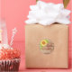 Ett solrosdekal av rustisk gult i elegant bestående av en bakgrund av brunt träkorn som dekorerats med en gult av söt blommigt med solros med ett bin och en sträng av ljus. Underbar till använda som ett tack för att du klisterat för förmånssäckar, lådor, presentfigursättning och kuvertdekoration för möhippor eller förlovningsfester i Bröllop. Anpassningsbar med eget namn anpassar sig sedan efter ditt eget val av namn. Tack