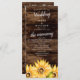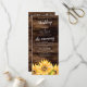 Rustiskt bröllopsprogram för solrostema med vattenfärgade blommor i gult på en lada med bakgrund från bröllop-ceremonin och party. Temaprogrammet perfekt land för sommar- och fallbröllop.